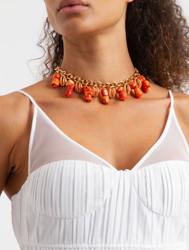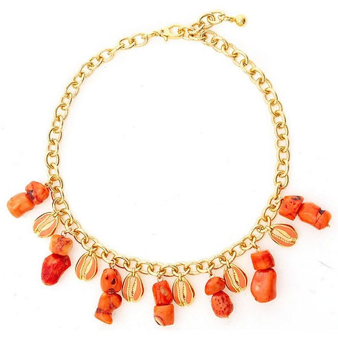 Colar Búzios Laranja com Corais