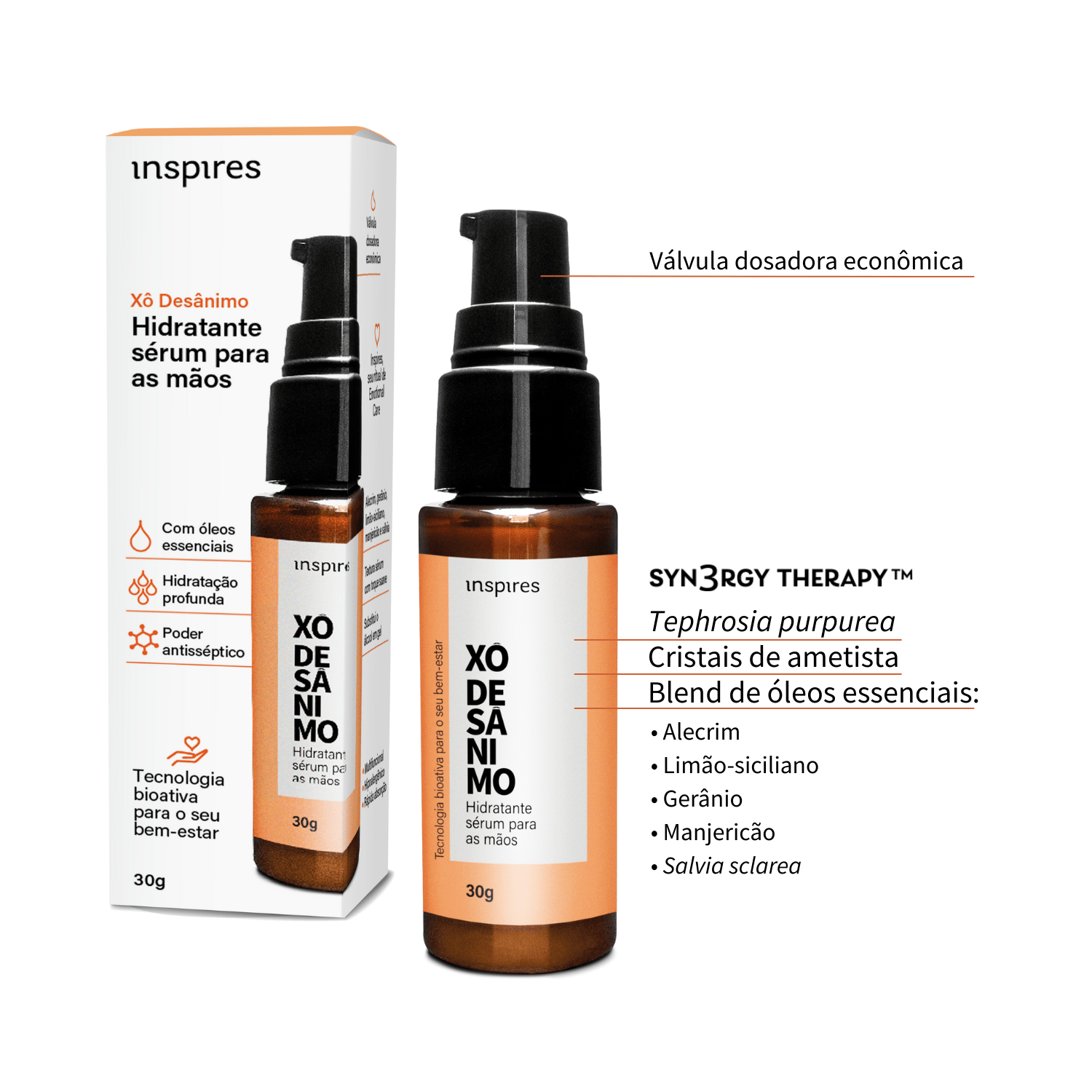Tecnologia Syn3ergy Therapy™ com blend de óleos essenciais (limão siciliano + alecrim + sálvia sclarea+ gerânio+manjericão),Neuroline® e cristais de ametista.