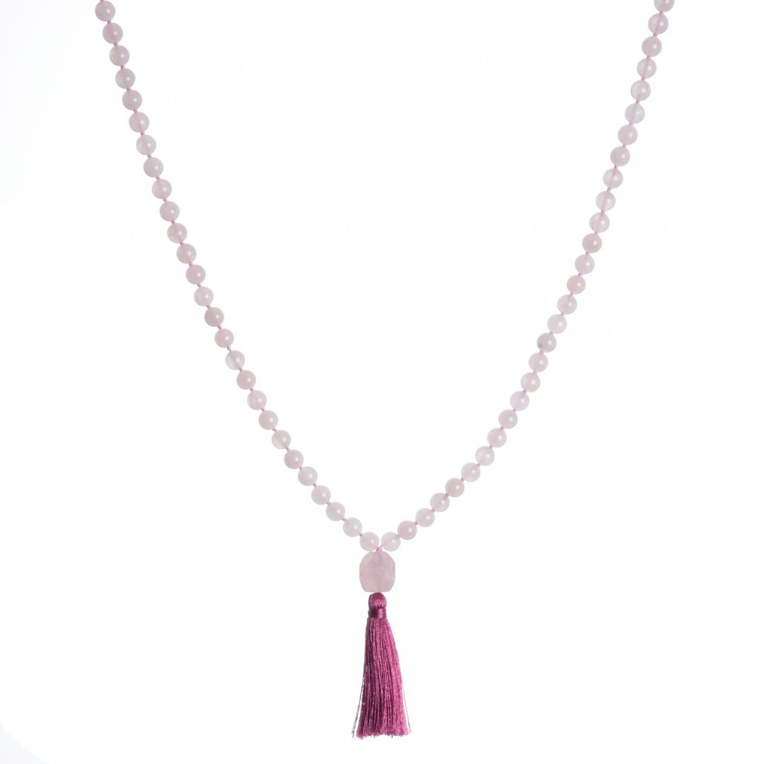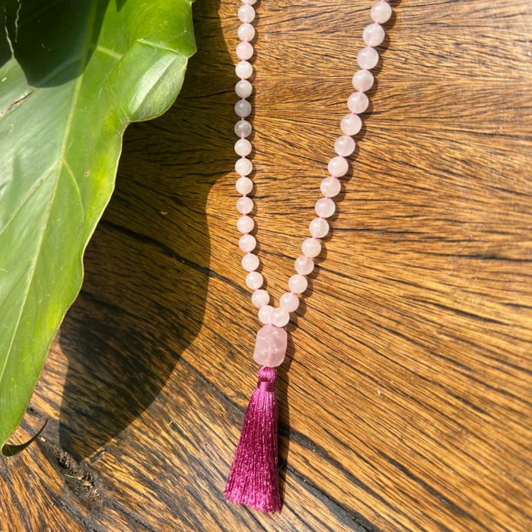 Mergulhe na energia amorosa do Quartzo Rosa! Nosso Japamala exibe contas de quartzo rosa e uma franja em rosa suave, elevando sua prática espiritual com um toque de delicadeza.