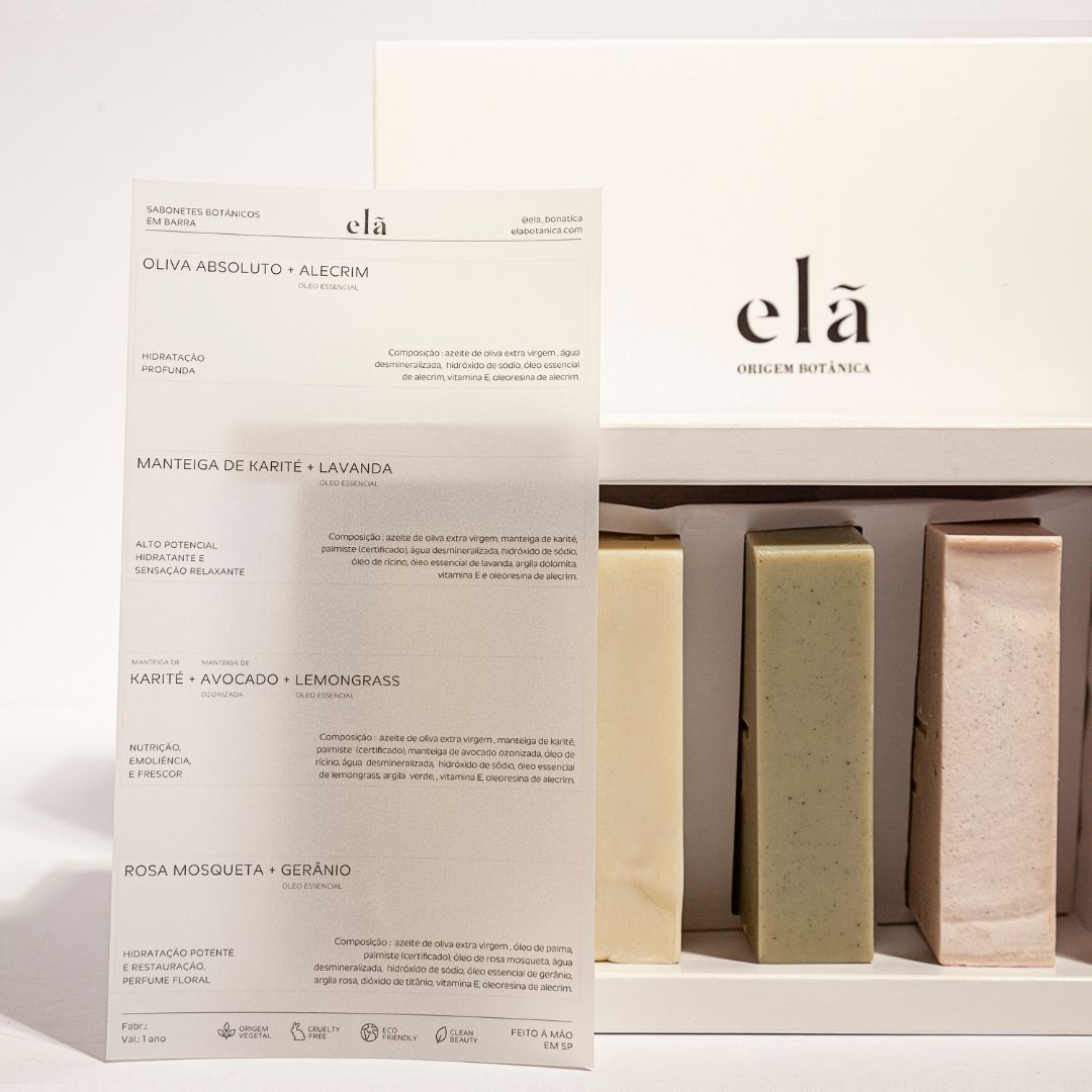 O kit inclui 4 sabonetes em barra + caixa de presente.