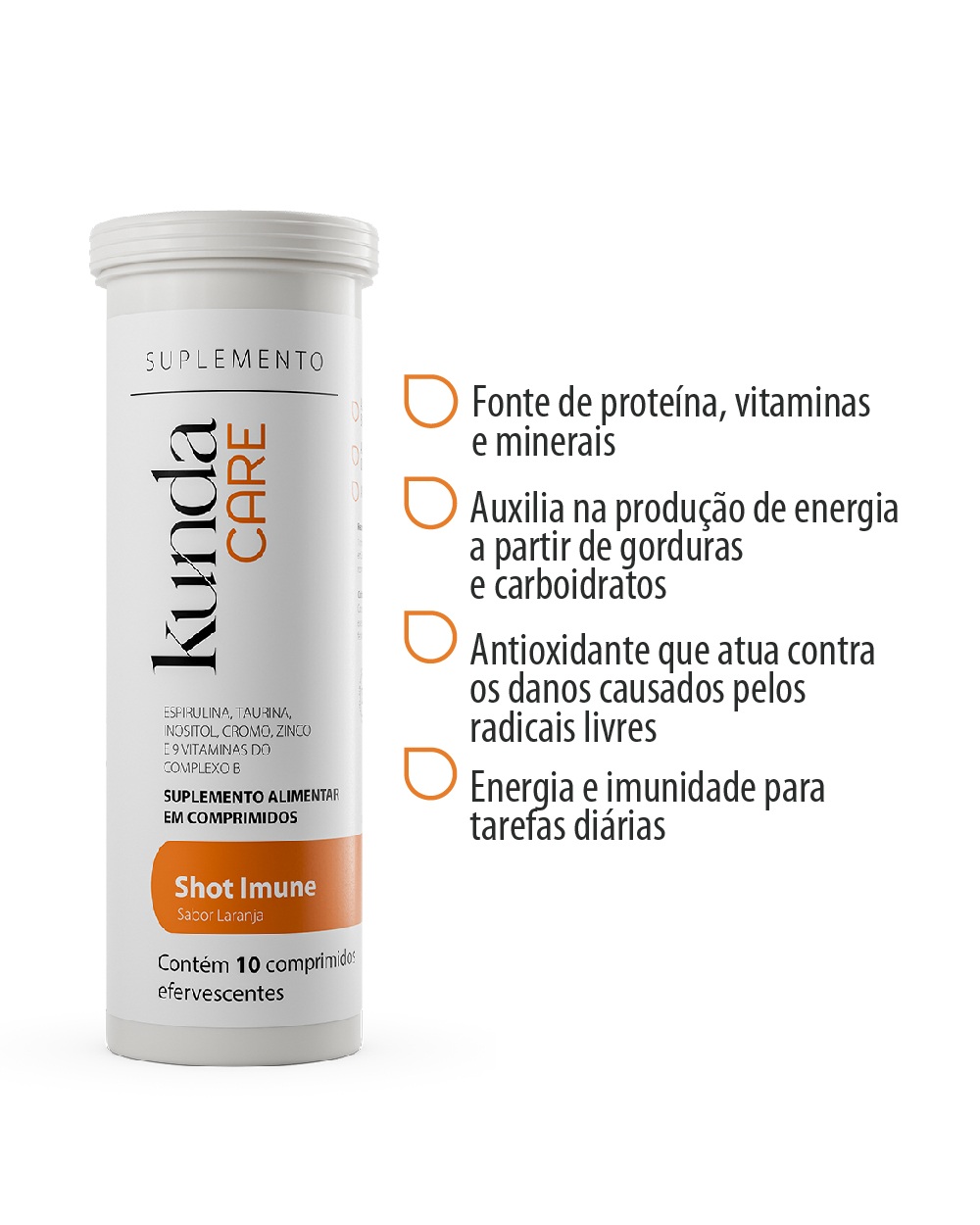 SHOT IMUNE é um suplemento alimentar em comprimidos efervescentes que auxilia na disposição, no fortalecimento da imunidade e ainda promove uma limpeza geral em seu organismo, transformando a gordura e carboidratos consumidos em pura energia!