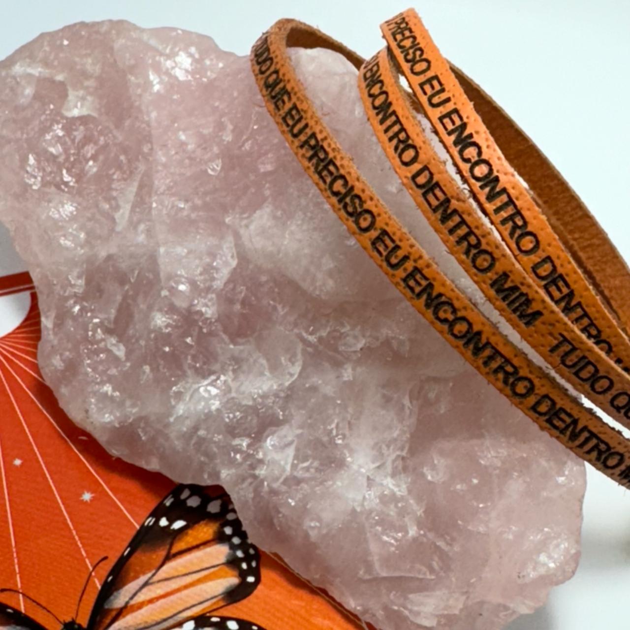Pulseira em couro natural, gravada a laser, com fecho de imā.