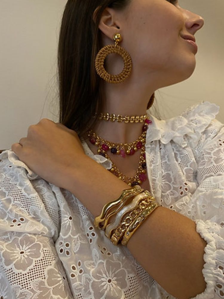 Pulseira dura babado grossa com banho de ouro italiano