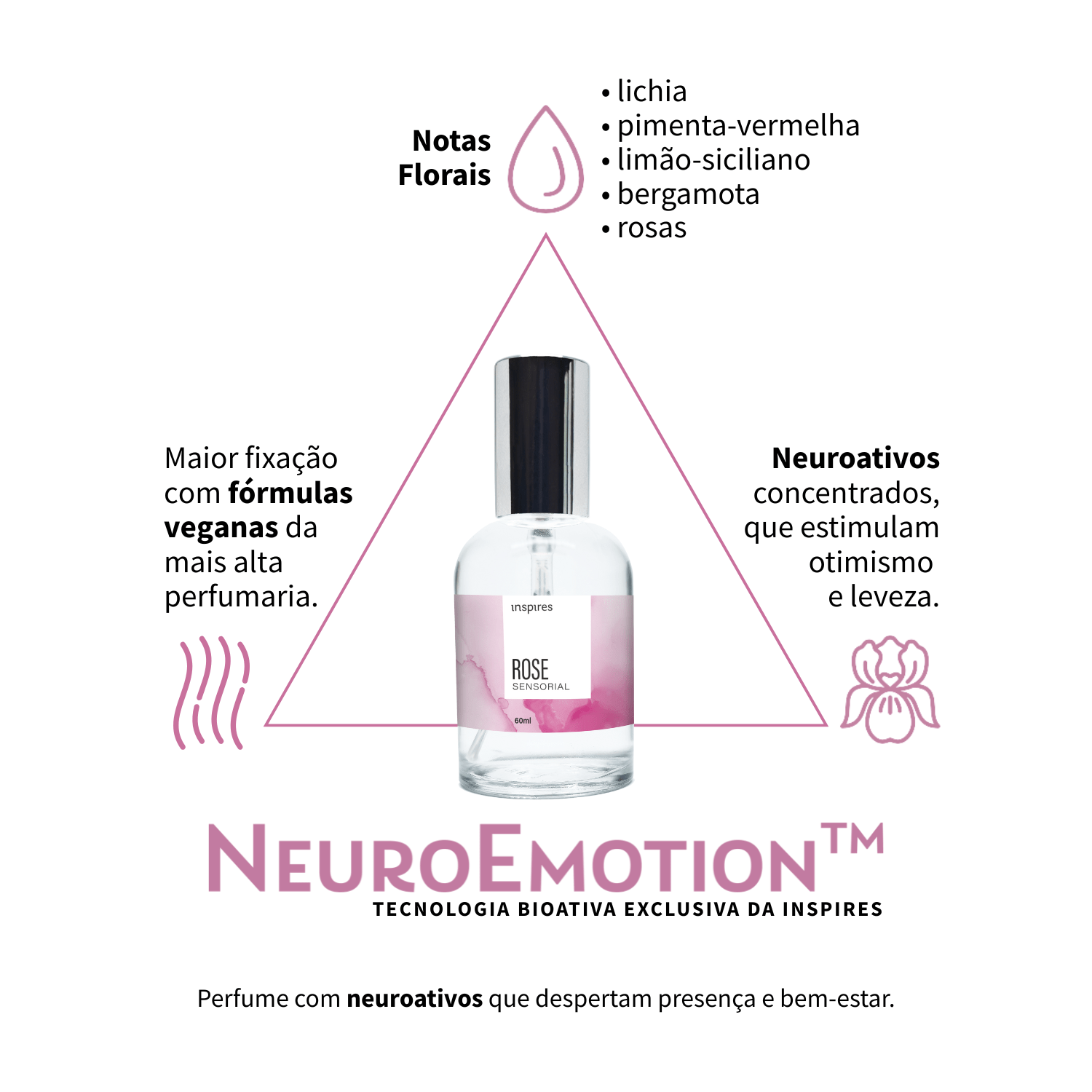 Com ingredientes de alta performance, Rose Sensorial ativa o sistema límbico por meio da inovadora tecnologia NeuroEmotion™ — uma fórmula que estimula áreas do cérebro ligadas às emoções e sensações. Muito além de perfumar — é presença, prazer e emoção em estado puro.