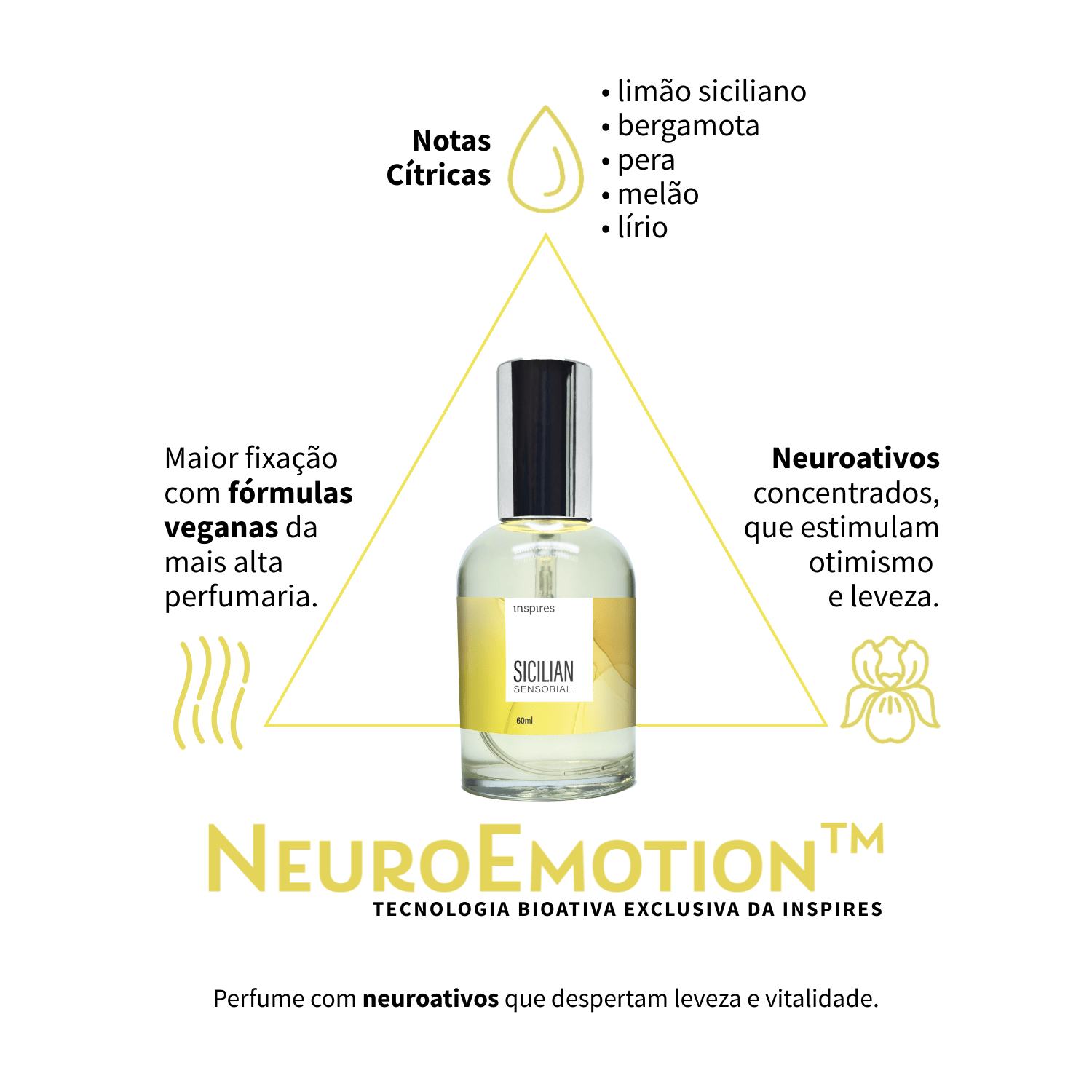 Com ingredientes de alta performance, Sicilian Sensorial ativa o sistema límbico por meio da inovadora tecnologia NeuroEmotion™ — uma fórmula que estimula áreas do cérebro ligadas às emoções e sensações. Ele desperta energia, leveza e prazer a cada uso.