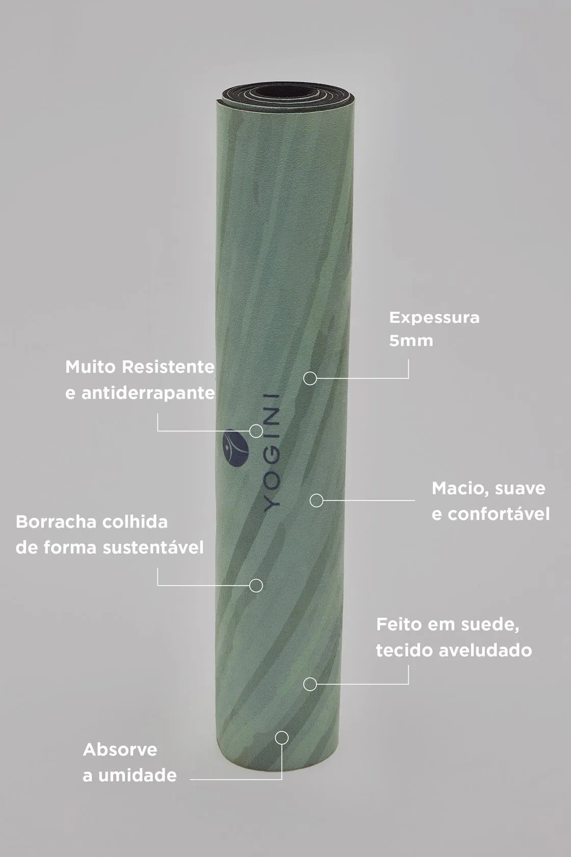 Borracha Reciclável. Reutilável. 100% livre de PVC. Não tóxico. Não usa metais pesados. Antimicrobiano. À prova dágua. Não usar escova, pode danificar o seu tapete. Não deixe seu mat exposto ao sol ou altas temperaturas. Secar o seu tapete após a prática.