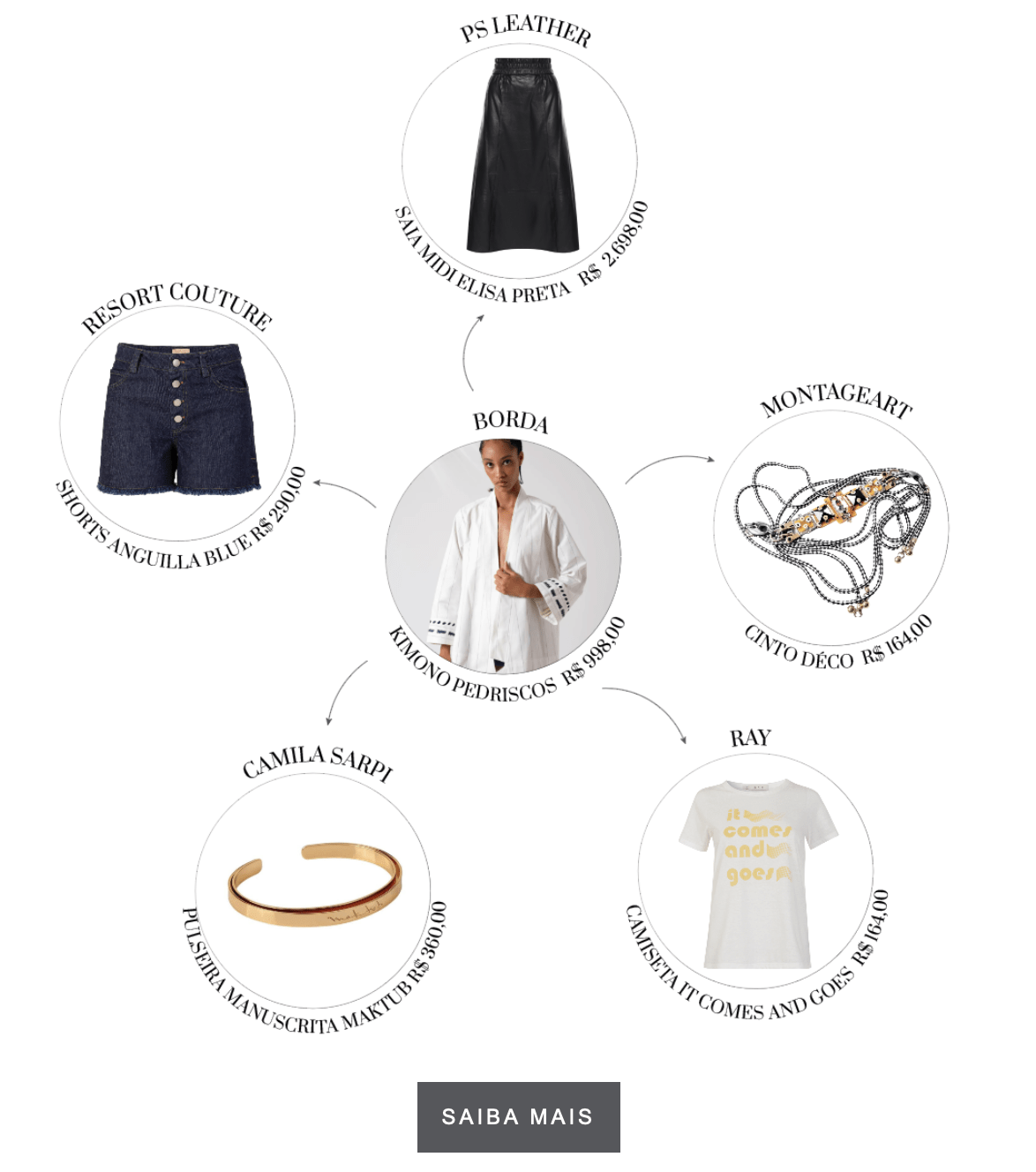 As camisas, kaftans e quimonos da Borda são atemporais e trazem detalhes feito à mão por artesãs da ONG Artesol – Artesanato Solidário. Escolhemos um modelo de kimono da Borda e outras peças que você encontra no nosso IT shop para inspirar seus looks, do trabalho ao fim-de-semana.
